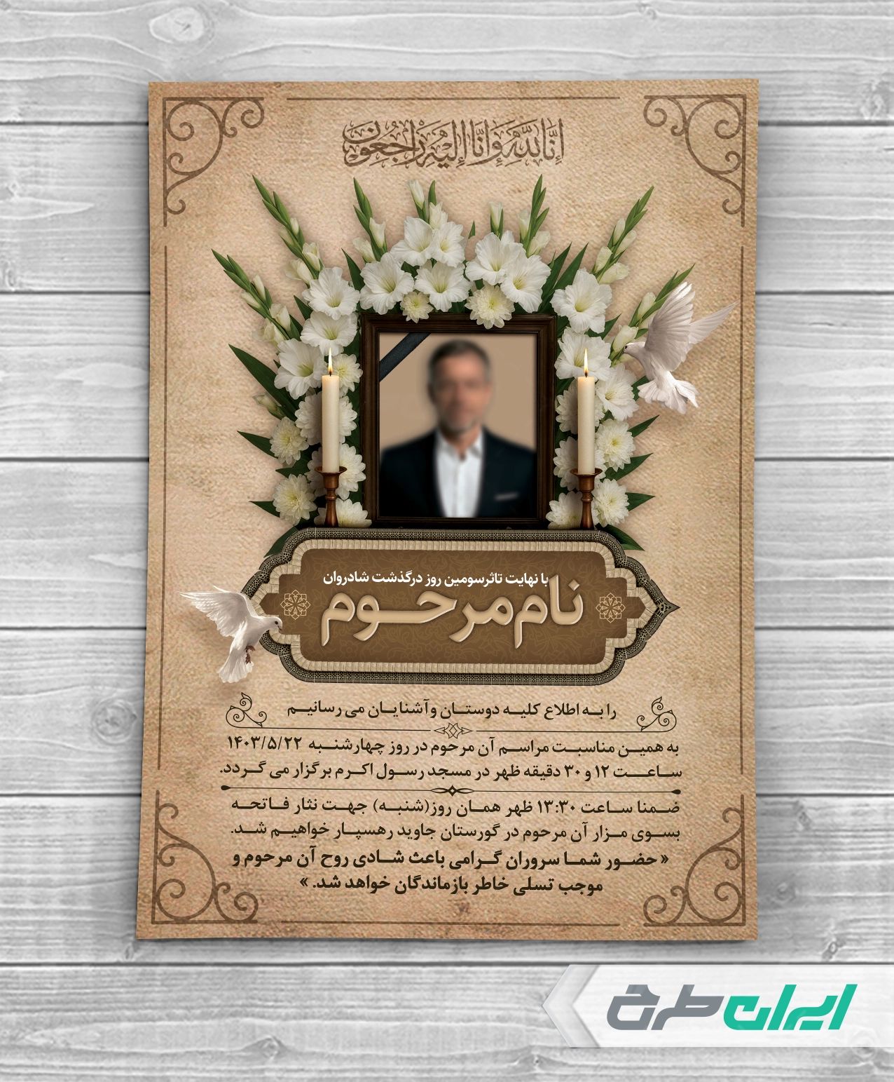 ایران طرح نمونه هایی از طرح اعلامیه ترحیم را جهت استفاده کاربران طراحی کرده است.