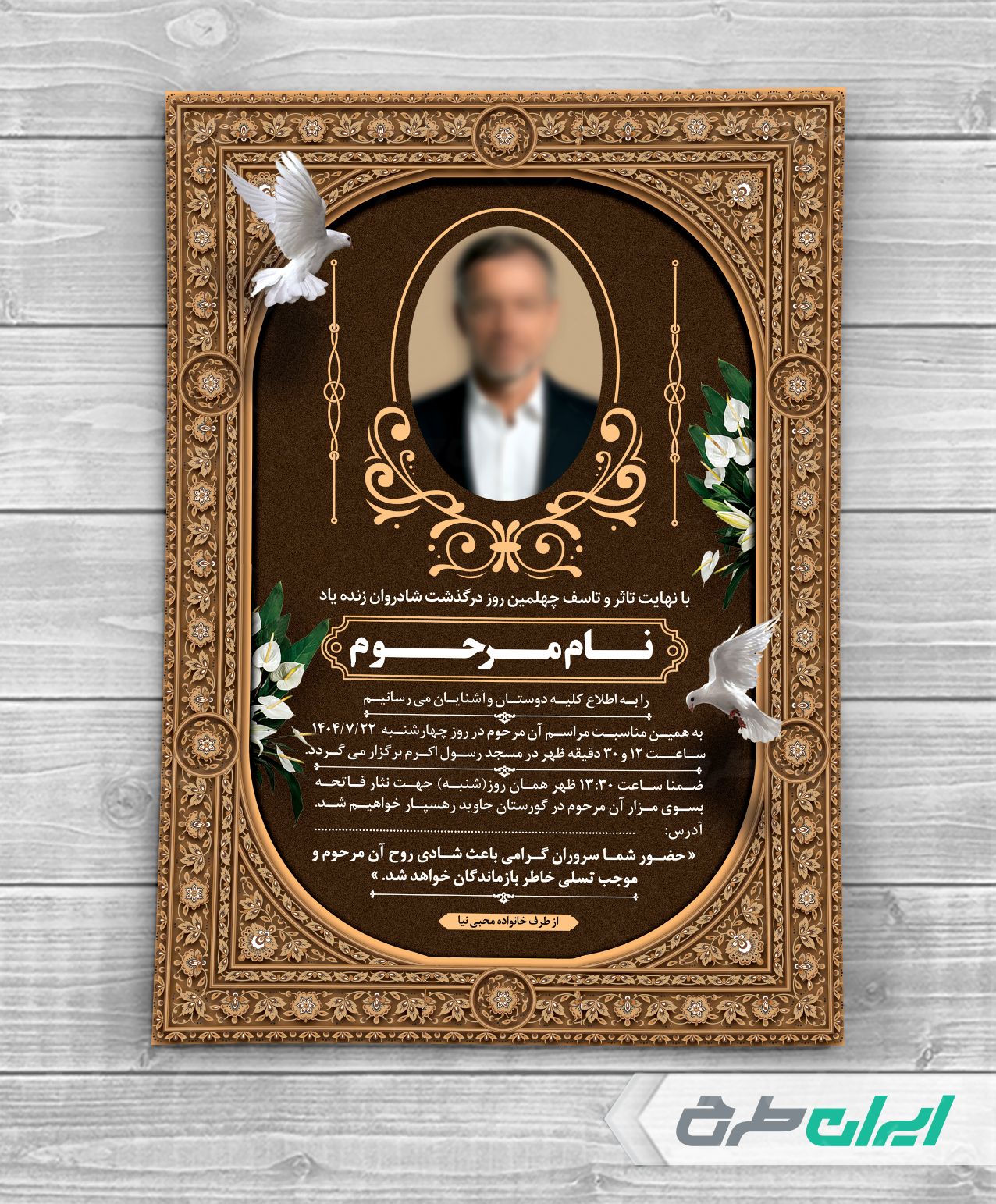 ایران طرح نمونه هایی از طرح اعلامیه ترحیم را جهت استفاده کاربران طراحی کرده است.