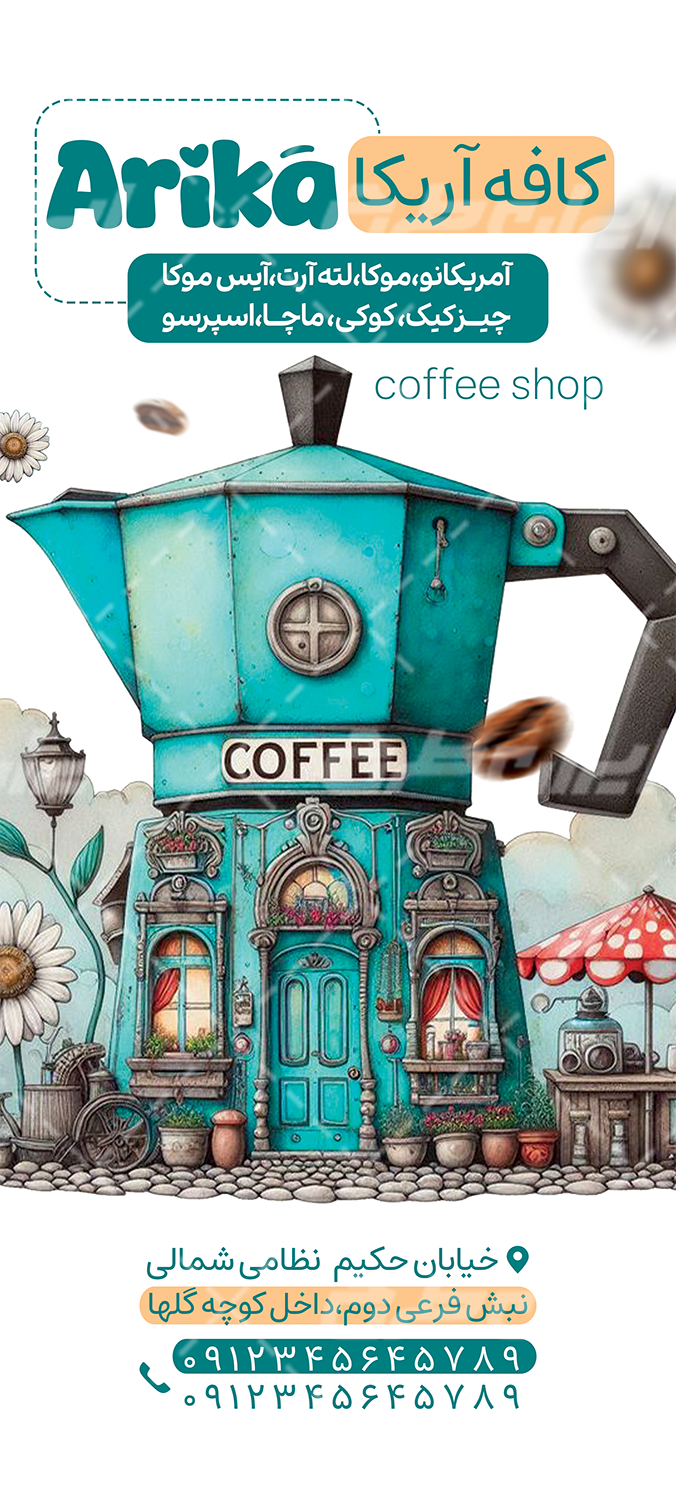 مشخصات فنی طرح لایه باز بنر قهوه سرا