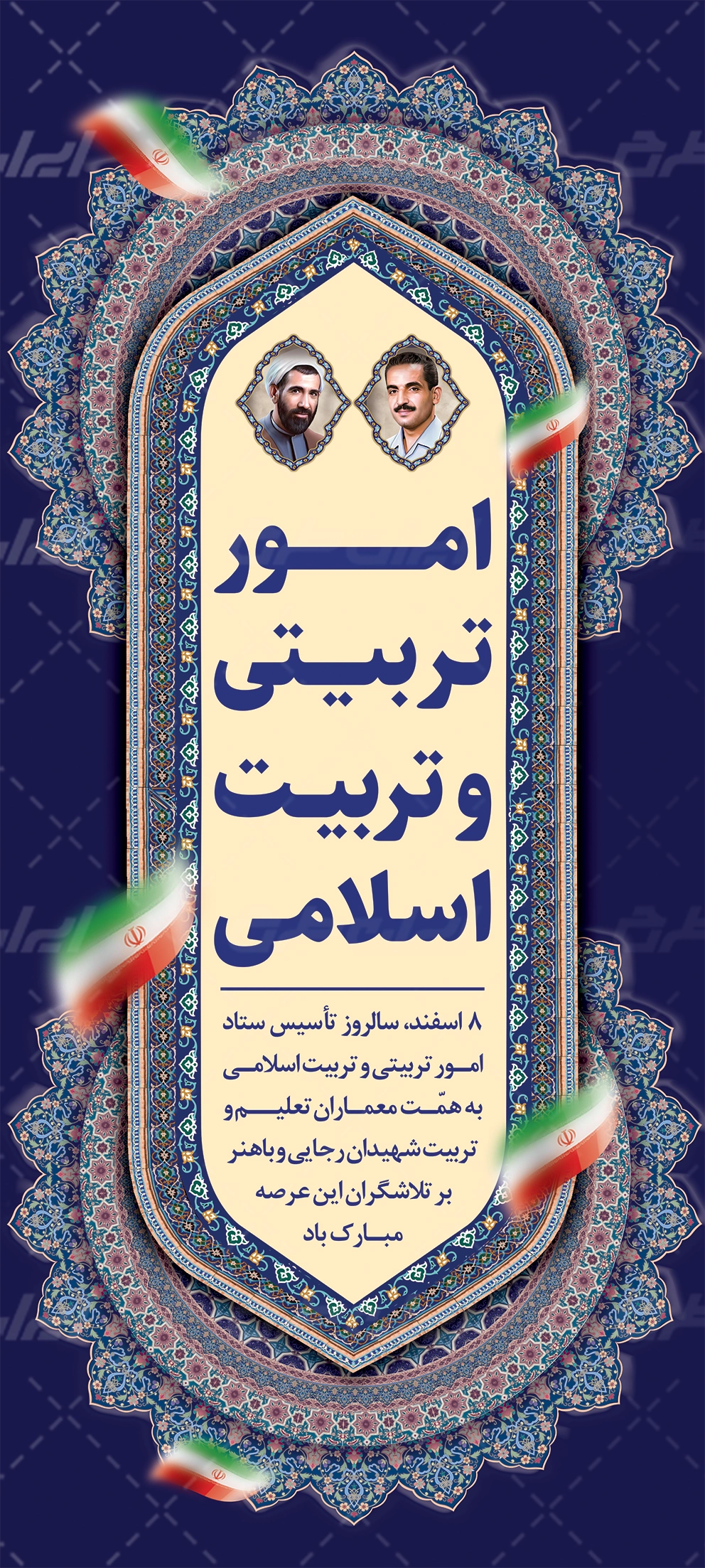 طرح بنر سالروز تاسیس امور تربیتی و تربیت اسلامی، توسط تیم حرفه ای ایران طرح جهت استفاده کاربران سایت طراحی و به صورت لایه باز در دسترس کاربران قرار گرفته است.