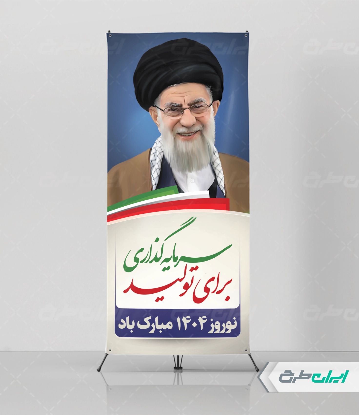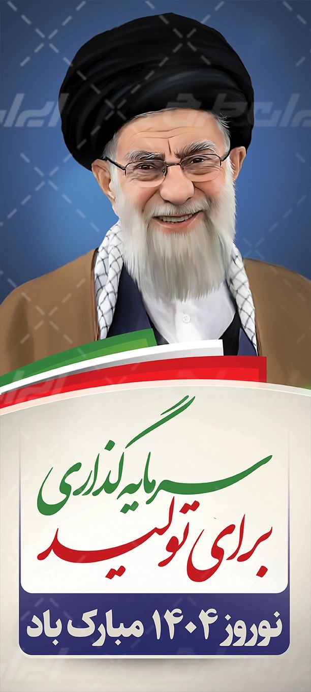 تصویر رهبری و متن شعار سال سرمایه گذاری برای تولید، که توسط تیم ایران طرح طراحی شده است.