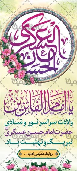 طرح بنر جشن ولادت امام حسن عسکری به مناسبت این سالروز فرخنده و با سعادت توسط پارس گرافیک طراحی شده است.