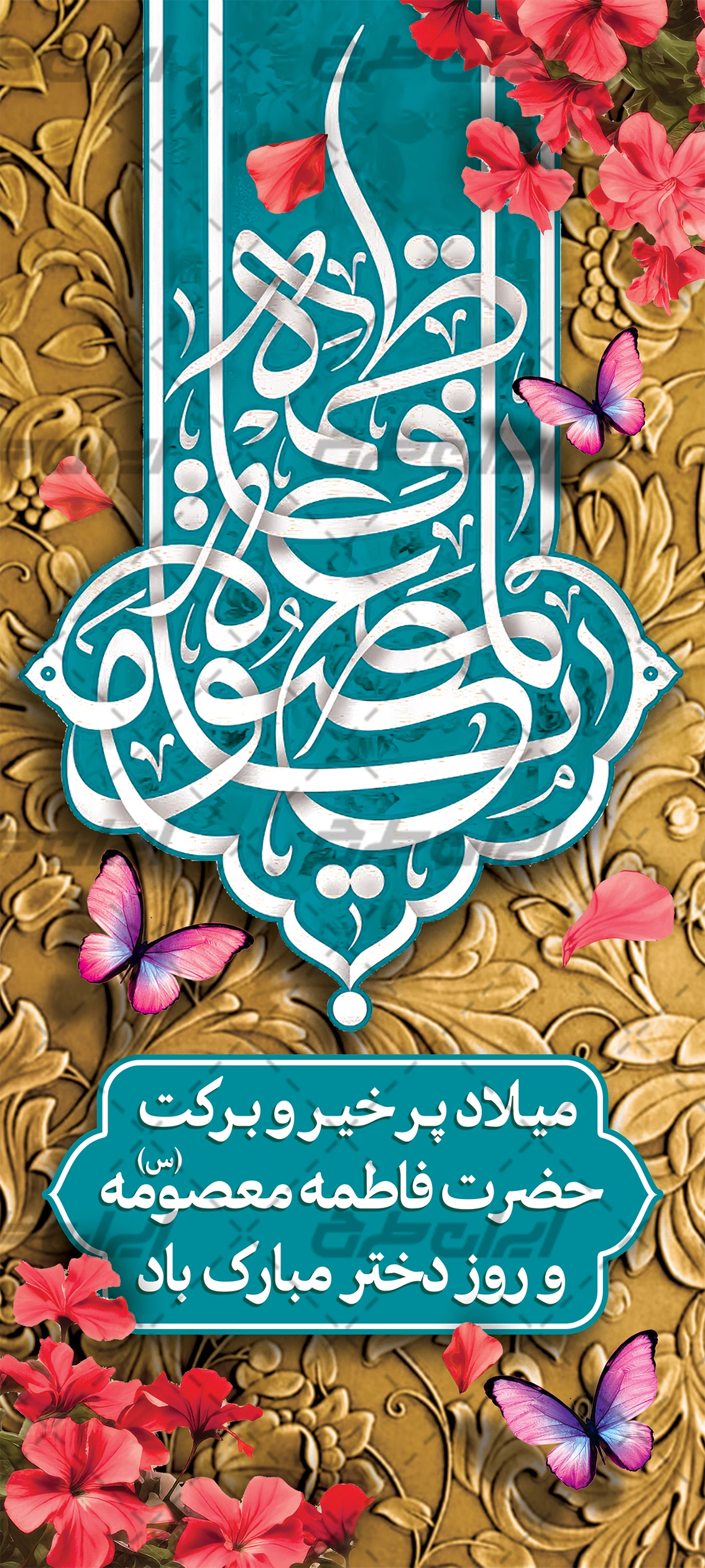 تذهیب و متن گرامیداشت ولادت حضرت معصومه (س) و روز دختر می باشد که توسط تیم ایران طرح طراحی شده است.