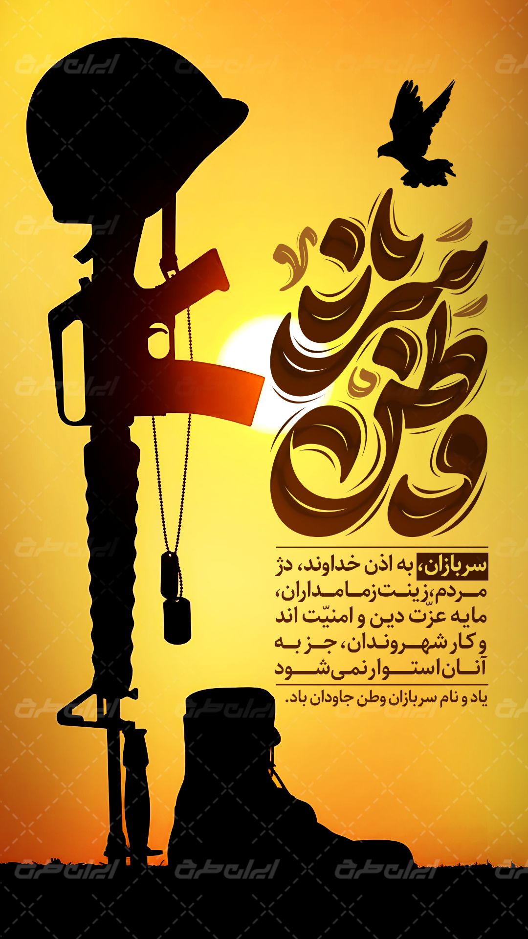 متن گرامیداشت روز سرباز و تصویر مناسب می باشد که توسط طراحان ایران طرح در نرم افزار فتوشاپ طراحی شده است.