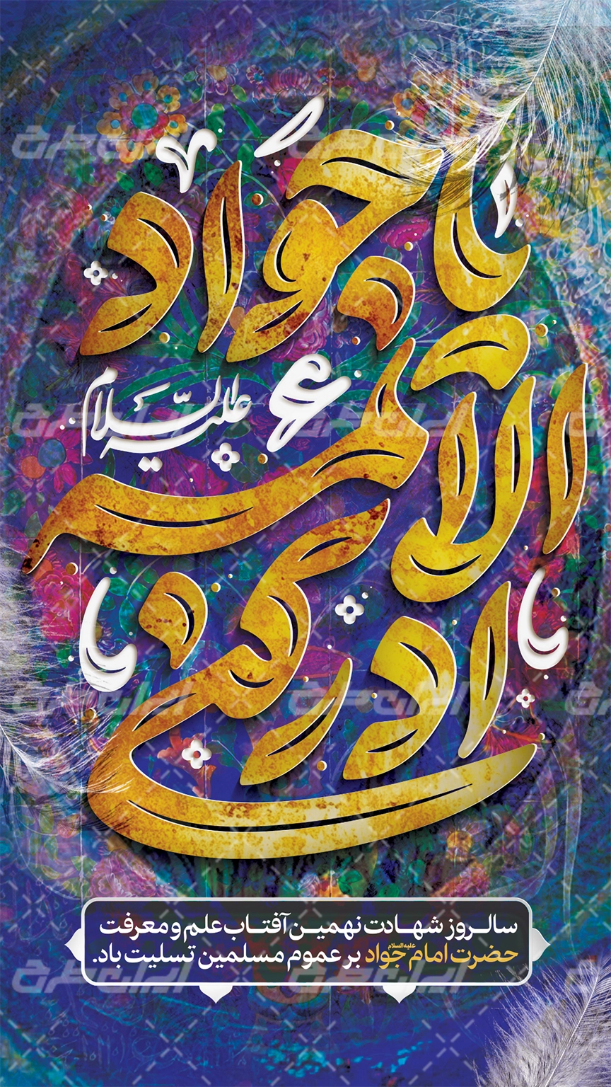 تایپوگرافی یا جواد الائمه ادرکنی و متن سالروز شهادت ایشان می باشد که توسط طراحان ایران طرح در نرم افزار فتوشاپ طراحی شده است.