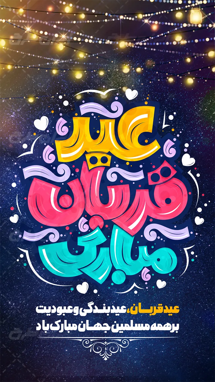 تایپوگرافی عید قربان مبارک و متن تبریک این عید می باشد که توسط طراحان ایران طرح در نرم افزار فتوشاپ طراحی شده است.