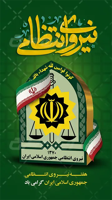 تصویر نیروی انتظامی و متن مرتبط با هفته نیروی انتظامی می باشد که توسط طراحان ایران طرح در نرم افزار فتوشاپ طراحی شده است.