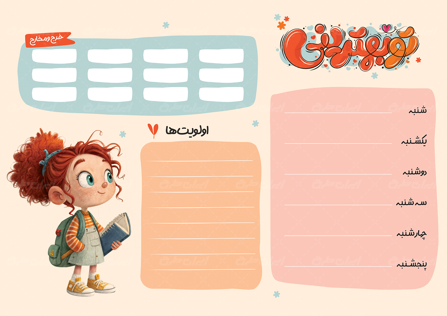 طرح برنامه هفتگی، توسط طراحان مجرب ایران طرح طراحی و در اختیار کاربران سایت قرار گرفته است.