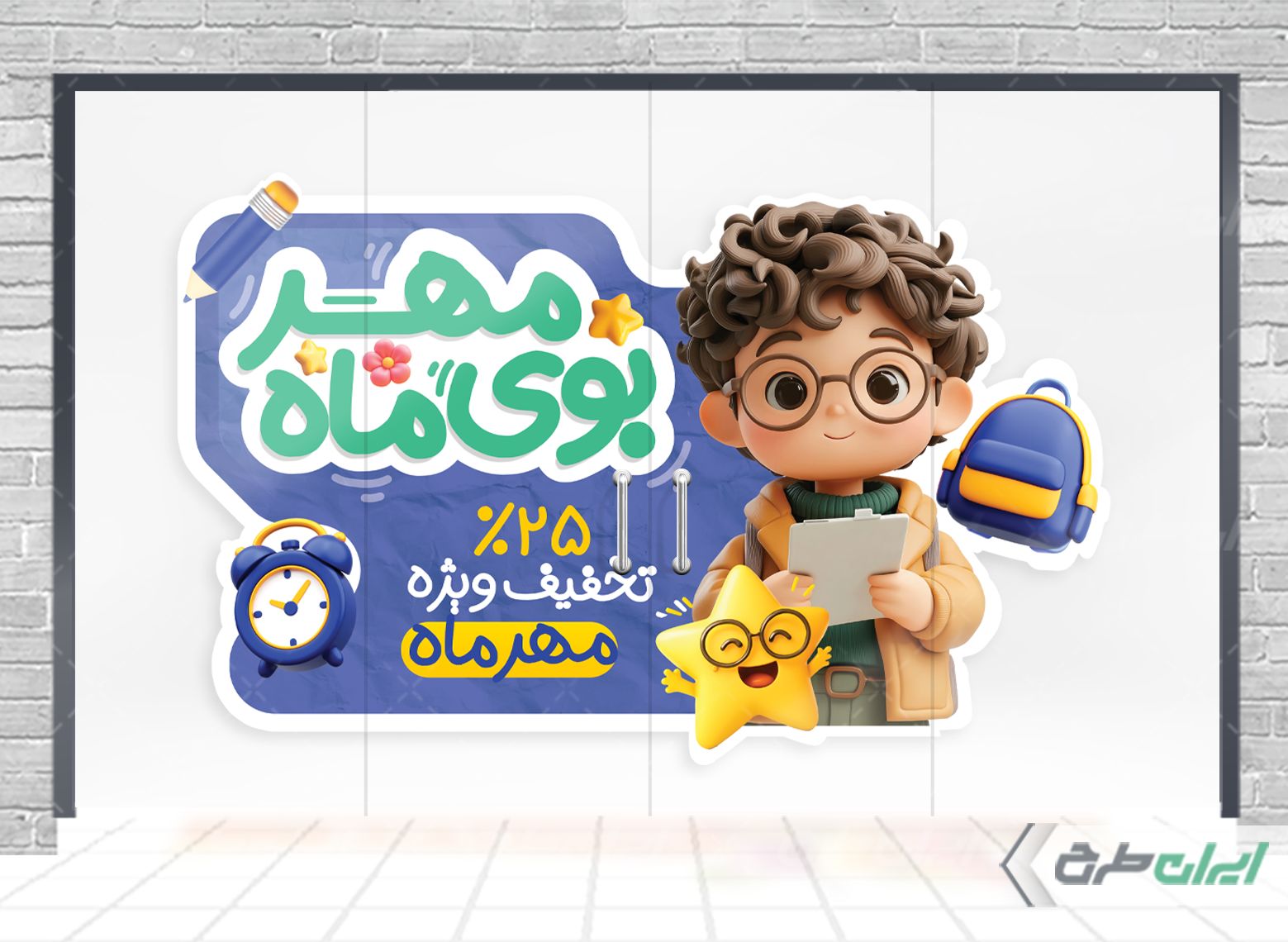 مشخصات فنی طرح برچسب روی شیشه فروشگاه لوازم تحریر