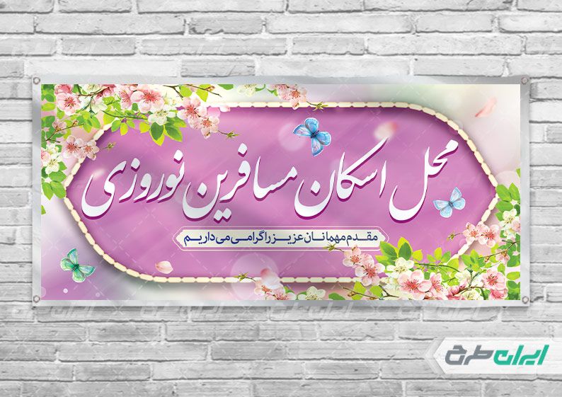- طراحی بنر با استفاده از تصویر شکوفه و پروانه در طرح بنر اسکان مسافران نوروزی