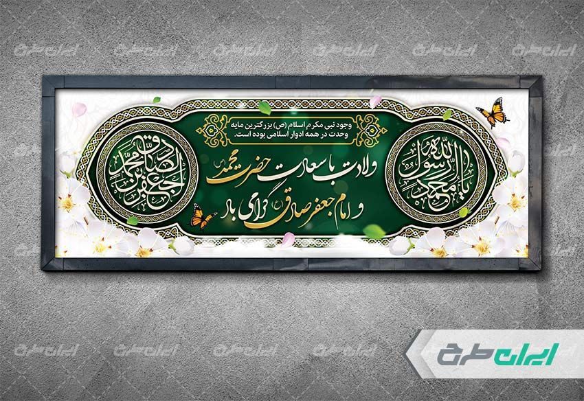 طرح بنر روز ولادت حضرت محمد (ص)، توسط تیم با تجربه ایران طرح جهت استفاده کاربران سایت طراحی و به صورت لایه باز در دسترس کاربران قرار گرفته است.