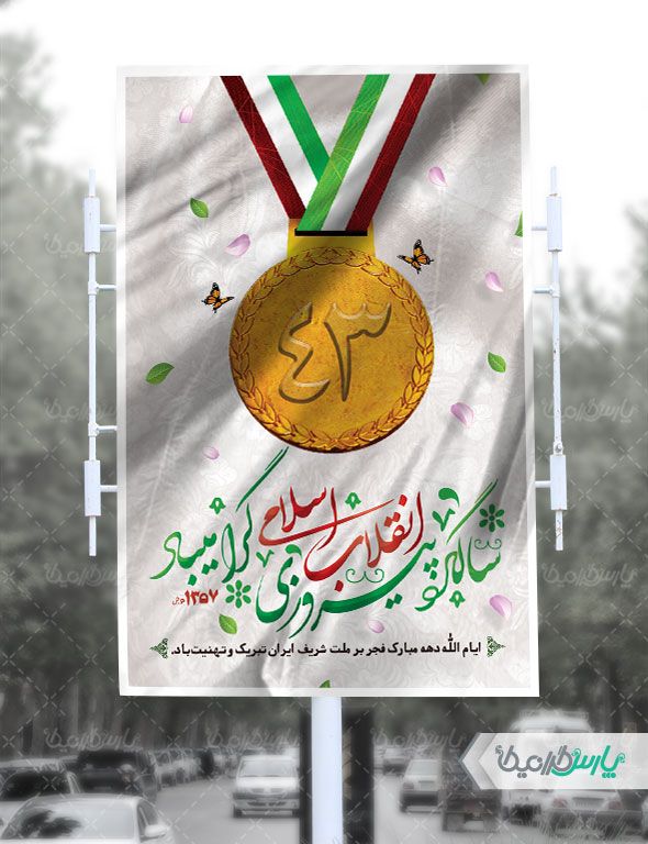 طرح بنر دهه فجر شامل: پروانه و گل و متن مرتبط با دهه فجر می باشد که توسط تیم پارس گرافیک طراحی شده است. به دلیل استفاده از عناصر و المان های با کیفیت در طرح بنر مناسبتی ، می توانید علاوه بر چاپ بنر (به صورت افقی)، در استوری اینستاگرام و یا دیگر پلت فرم های فضای مجازی استفاده نمایید. ضمنا به دلیل لایه باز بود طرح بنر دهه فجر می توانید با استفاده از نرم افزار فتوشاپ تغییرات دلخواه خود را اعمال کنید.
