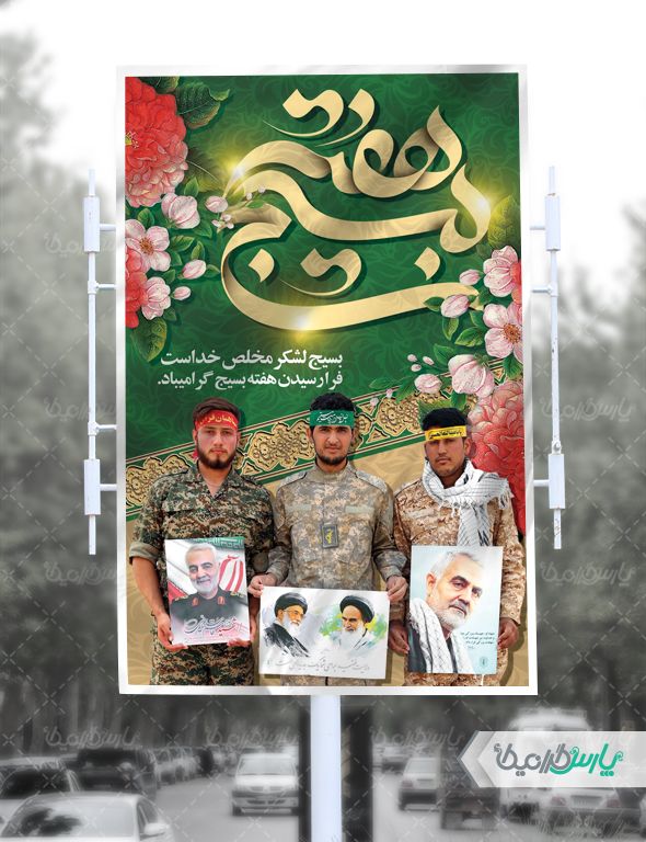 بنر لایه باز هفته بسیج، توسط تیم حرفه ای پارس گرافیک جهت استفاده کاربران سایت طراحی و به صورت لایه باز در دسترس کاربران قرار گرفته است.