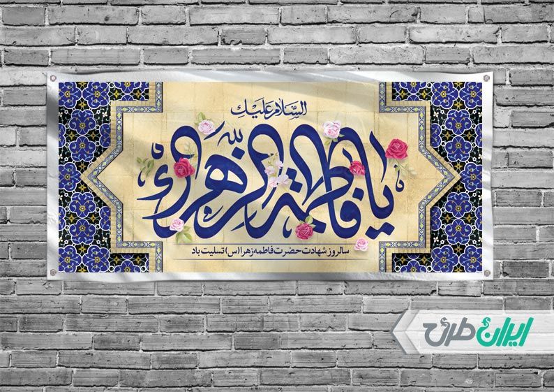 طرح بنر سالگرد شهادت حضرت فاطمه زهرا ، بنر سالگرد شهادت حضرت فاطمه زهرا، بنر لایه باز سالگرد شهادت حضرت فاطمه زهرا، بنر مناسبتی، متن تسلیت دهه فاطمیه ، تایپوگرافی فاطمه الزهرا ، نقوش اسلیمی ، نقوش مذهبی ، تذهیب ، متن تسلیت شهادت حضرت فاطمه