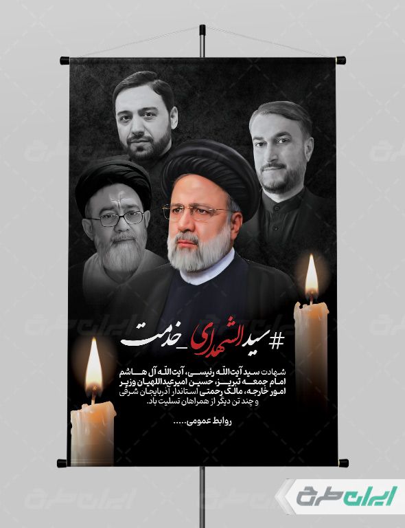 بنر تسلیت شهادت سید ابراهیم رئیسی، توسط تیم حرفه ای ایران طرح جهت استفاده کاربران سایت طراحی و به صورت لایه باز در دسترس کاربران قرار گرفته است.