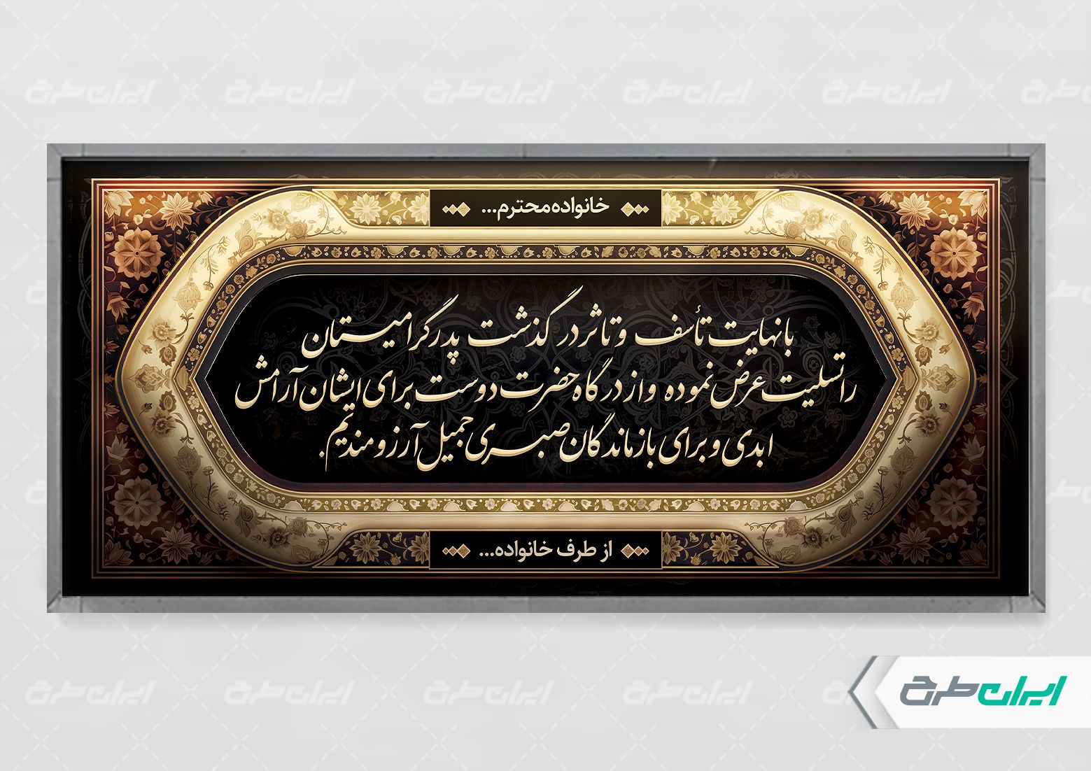 طرح بنر تسلیت ، توسط تیم حرفه ای ایران طرح جهت استفاده کاربران سایت طراحی و به صورت لایه باز در دسترس کاربران قرار گرفته است.