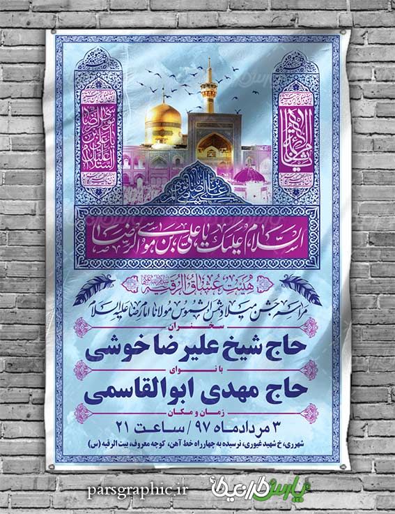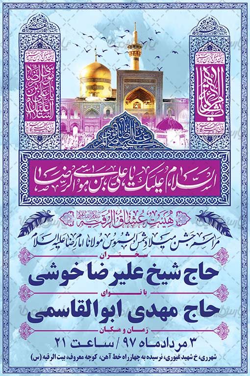 طرح بنر مراسم جشن ولادت امام رضا بصورت PSD و کاملا لایه باز می باشد.
