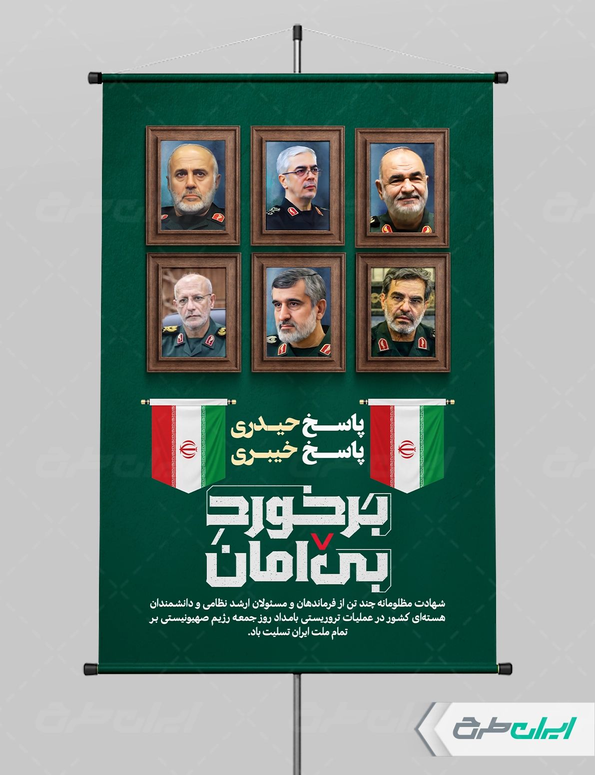طرح بنر شهادت فرماندهان سپاه توسط تیم ایران طرح طراحی و در دسترس کاربران سایت قرار گرفته است.