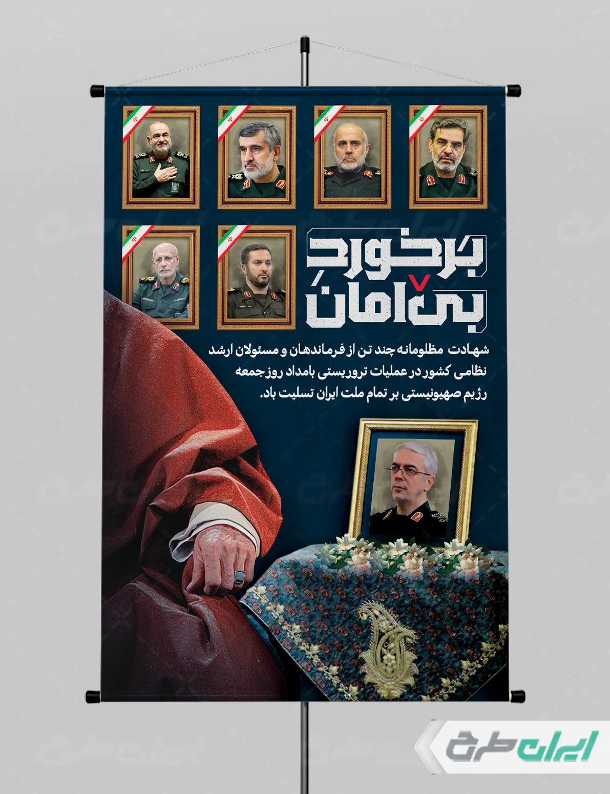 طرح بنر شهادت فرماندهان سپاه توسط تیم ایران طرح طراحی و در دسترس کاربران سایت قرار گرفته است.
