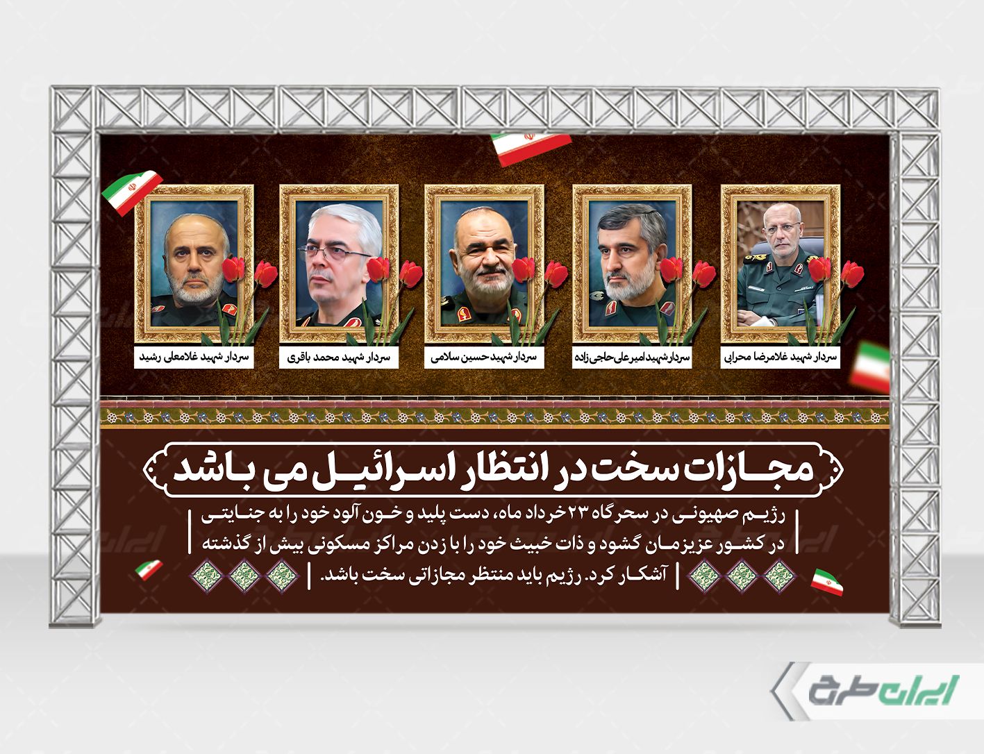 بنر حمله تروریستی اسرائیل و شهادت فرماندهان سپاه