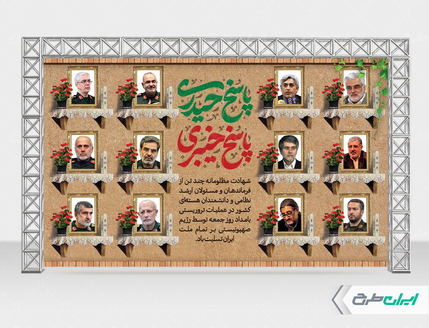 طرح بنر شهادت فرماندهان سپاه توسط تیم ایران طرح طراحی و در دسترس کاربران سایت قرار گرفته است.