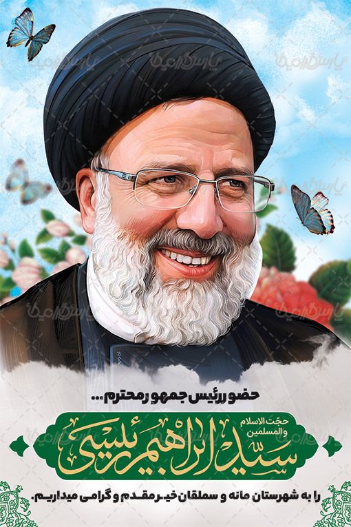 بنر خیر مقدم رئیس جمهور، طرح بنر خیر مقدم رئیس جمهور، بنر لایه باز خیر مقدم رئیس جمهور،عکس گرافیکی و باکیفیت دکتر رئیسی، طرح گل، تذهیب، کادر اسلیمی، تصویر دکتر رئیسی، متن نستعلیق حجت الاسلام والمسلمین سید ابراهیم رئیسی ، متن خوش آمد گویی، بنر مناسبتی، بنر لایه باز، طرح بنر مناسبتی