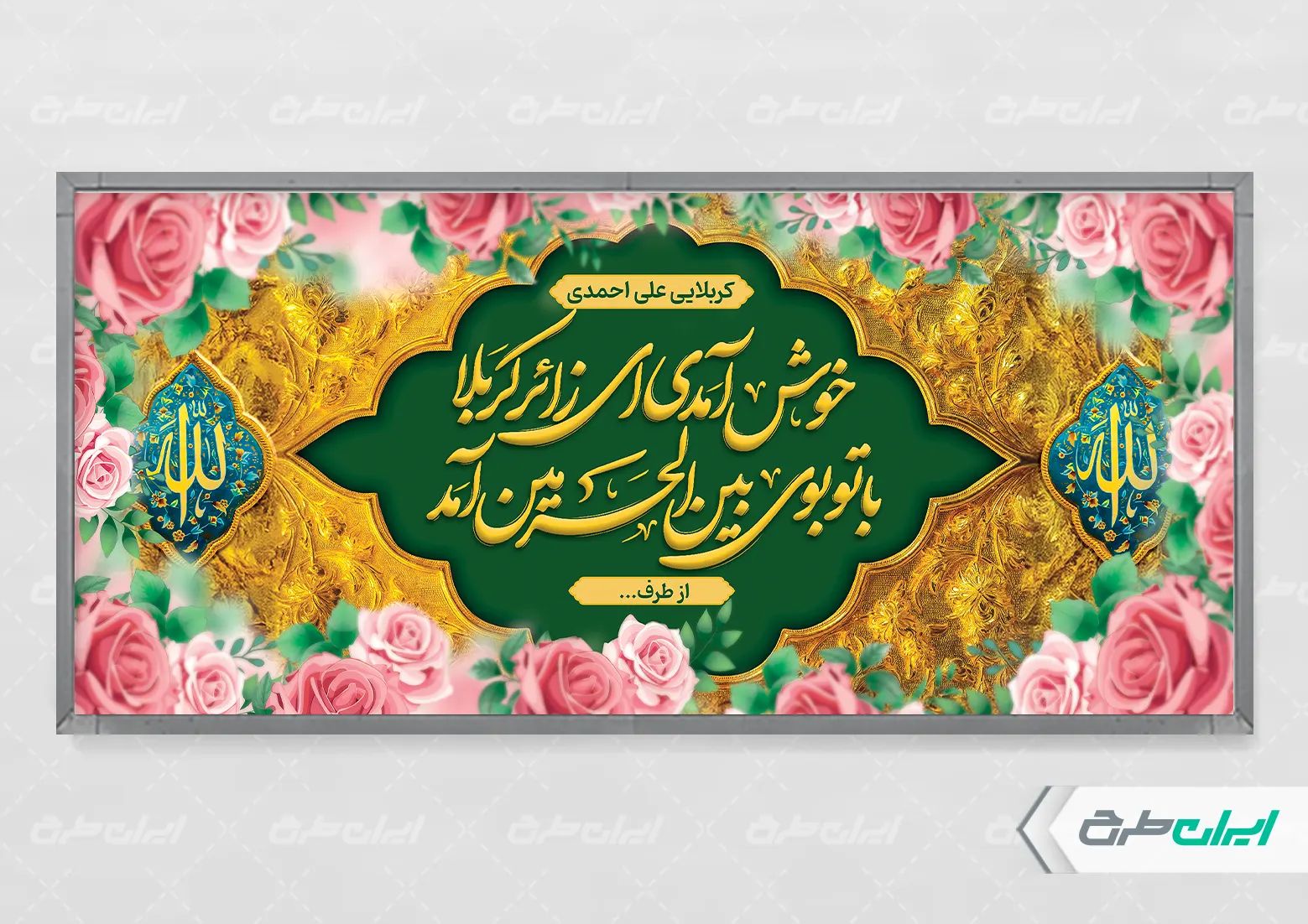 طرح بنر خیر مقدم کربلا ، توسط تیم حرفه ای ایران طرح جهت استفاده کاربران سایت طراحی و به صورت لایه باز در دسترس کاربران قرار گرفته است.