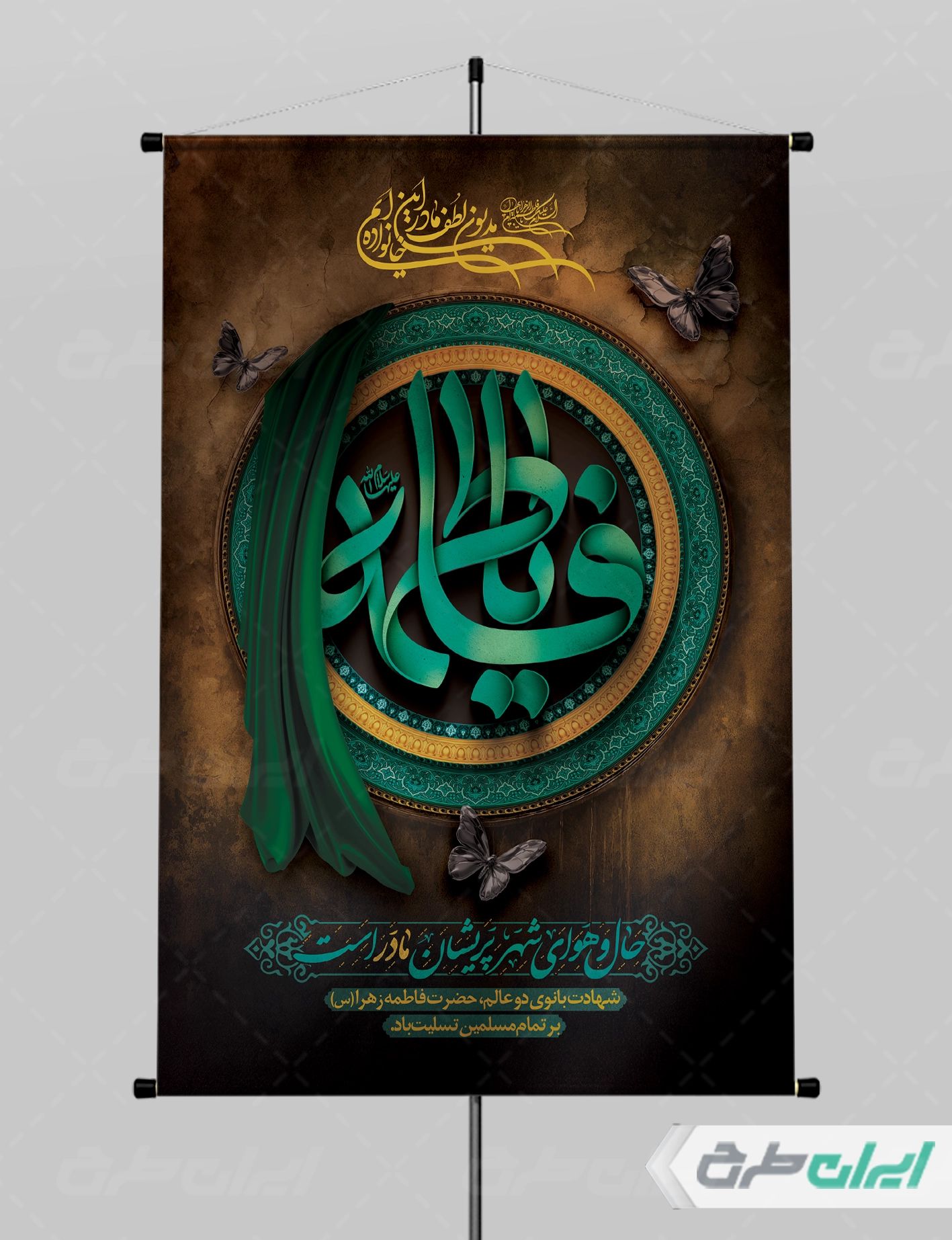 طرح بنر سالگرد شهادت حضرت فاطمه زهرا شامل: