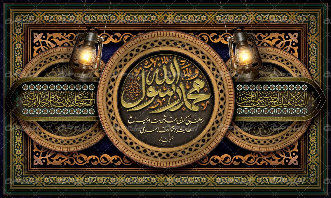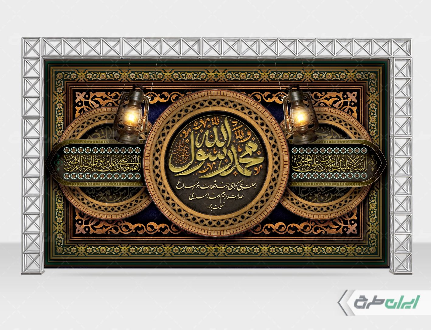 ضمنا به دلیل لایه باز بود طرح بنر تبریک رحلت پیامبر اکرم می توانید با استفاده از نرم افزار فتوشاپ طرح را ویرایش نمایید.