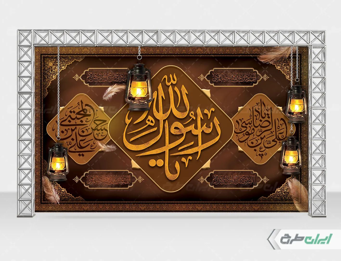 ضمنا به دلیل لایه باز بود طرح بنر تبریک رحلت پیامبر اکرم می توانید با استفاده از نرم افزار فتوشاپ طرح را ویرایش نمایید.