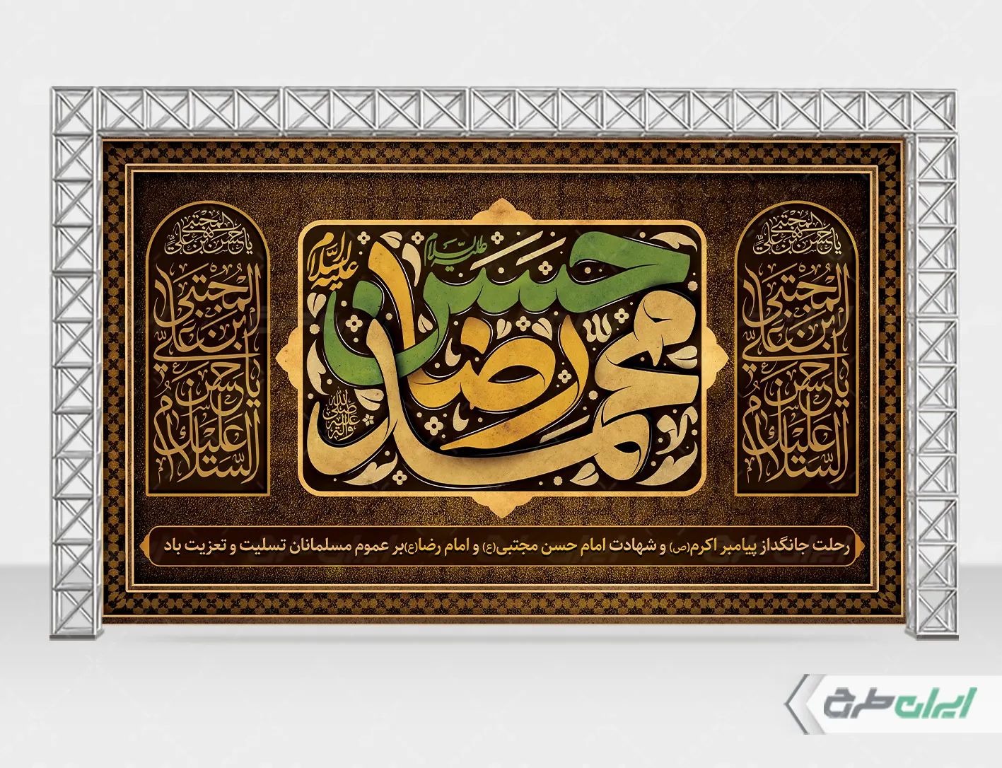 تذهیب، نقوش مذهبی و متن تسلیت رحلت پیامبر و شهادت امام حسن و امام رضا (ع) می باشد که توسط تیم ایران طرح طراحی شده است.