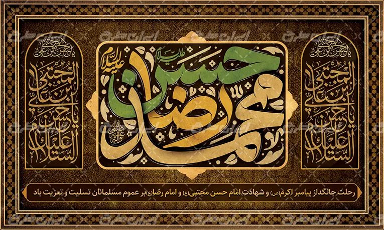 ضمنا به دلیل لایه باز بود طرح بنر تبریک رحلت پیامبر اکرم می توانید با استفاده از نرم افزار فتوشاپ طرح را ویرایش نمایید.