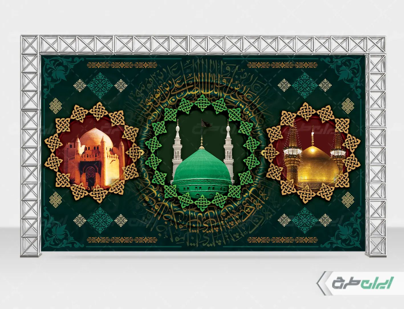 ضمنا به دلیل لایه باز بود طرح بنر تبریک رحلت پیامبر اکرم می توانید با استفاده از نرم افزار فتوشاپ طرح را ویرایش نمایید.
