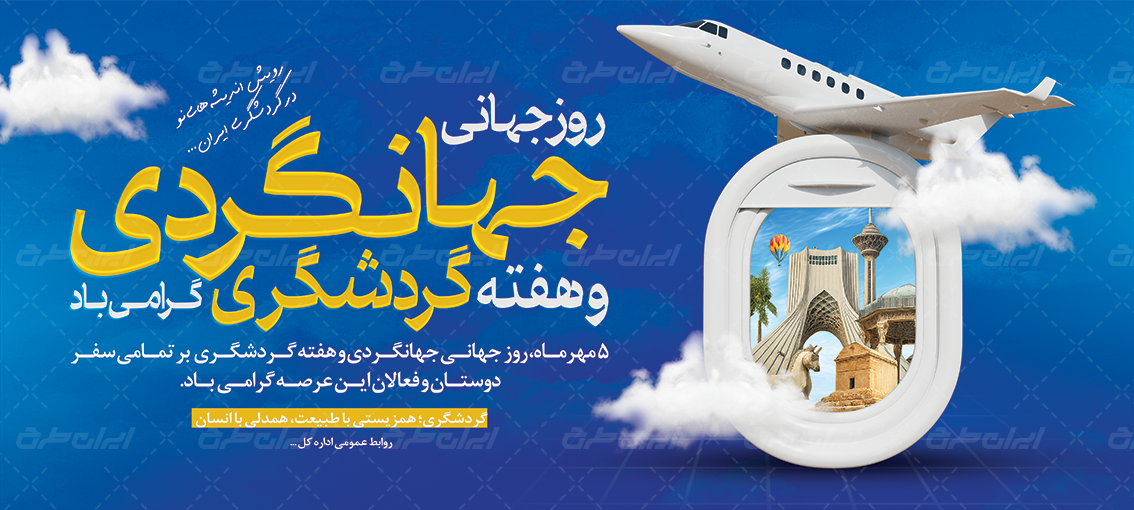 ضمنا به دلیل لایه باز بود طرح بنر روز جهانگردی می توانید با استفاده از نرم افزار فتوشاپ طرح را ویرایش نمایید.