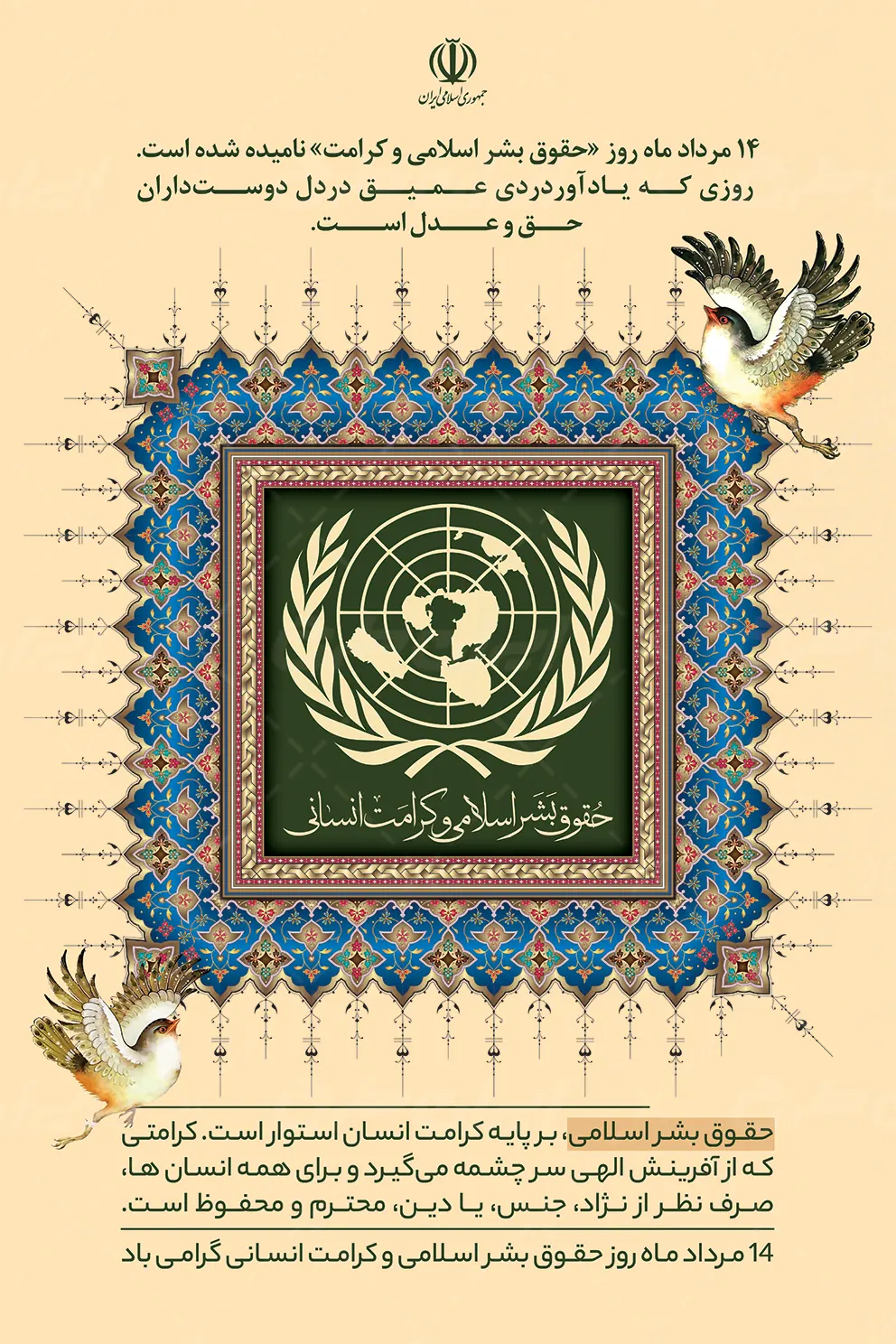 تصویر مرتبط و متن گرامیداشت روز حقوق بشر اسلامی و کرامت انسانی می باشد که توسط تیم ایران طرح طراحی شده است.