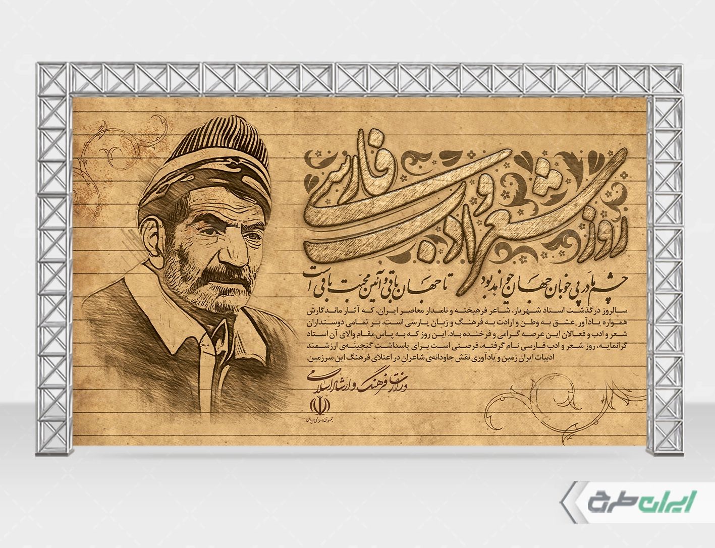 تایپوگرافی شعر و ادب پارسی، تصویر تندیس استاد شهریار و متن بزرگداشت سالروز شعر و ادب می باشد که توسط تیم ایران طرح طراحی شده است.