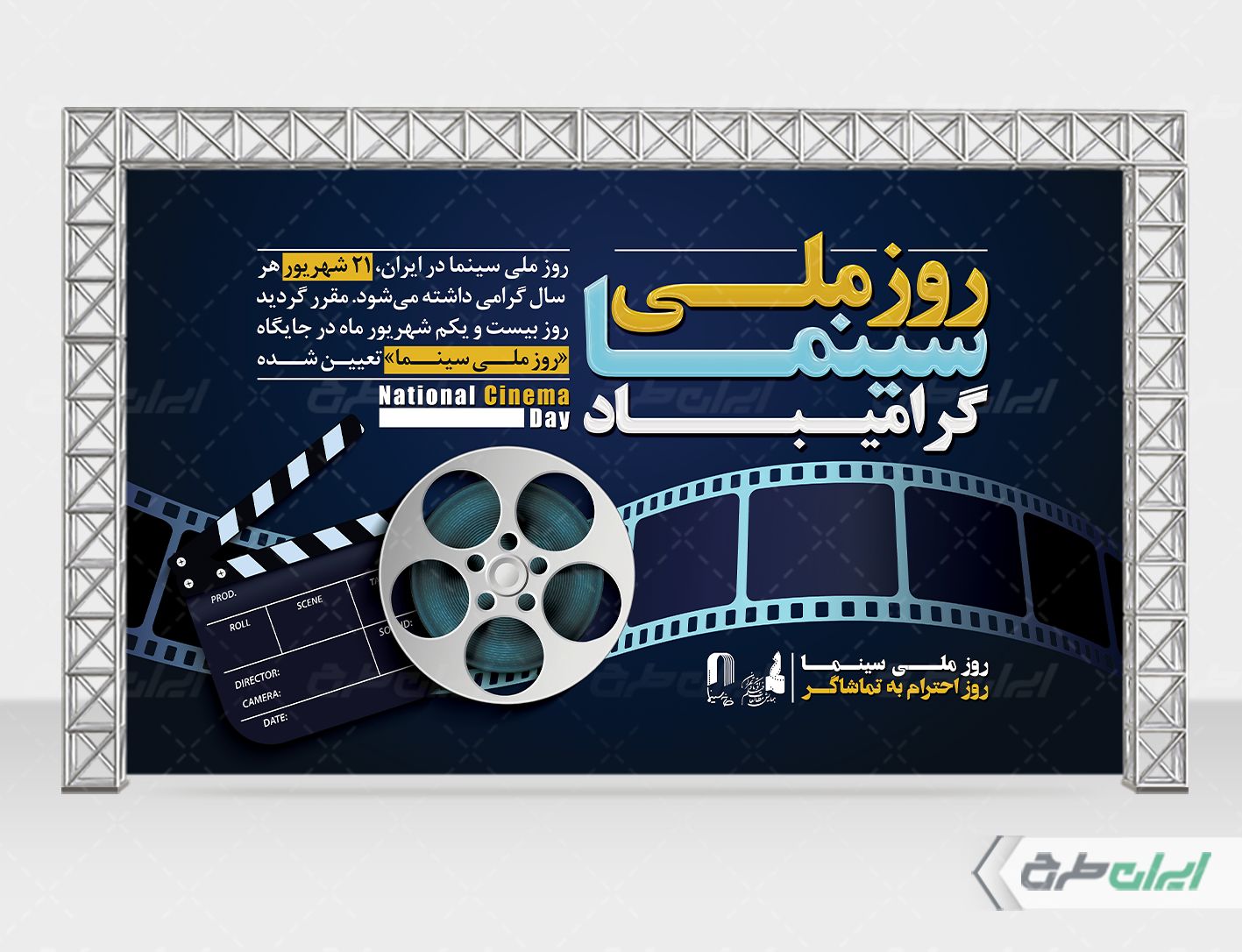 بنر لایه باز روز ملی سینما، توسط تیم با تجربه ایران طرح جهت استفاده کاربران سایت طراحی و به صورت لایه باز در دسترس کاربران قرار گرفته است.