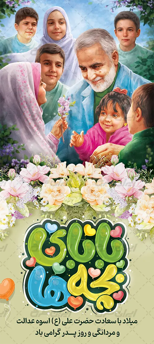 تایپوگرافی بابای بچه ها و متن تبریک روز پدر و ولادت امام علی (ع ) می باشد که توسط تیم ایران طرح طراحی شده است.