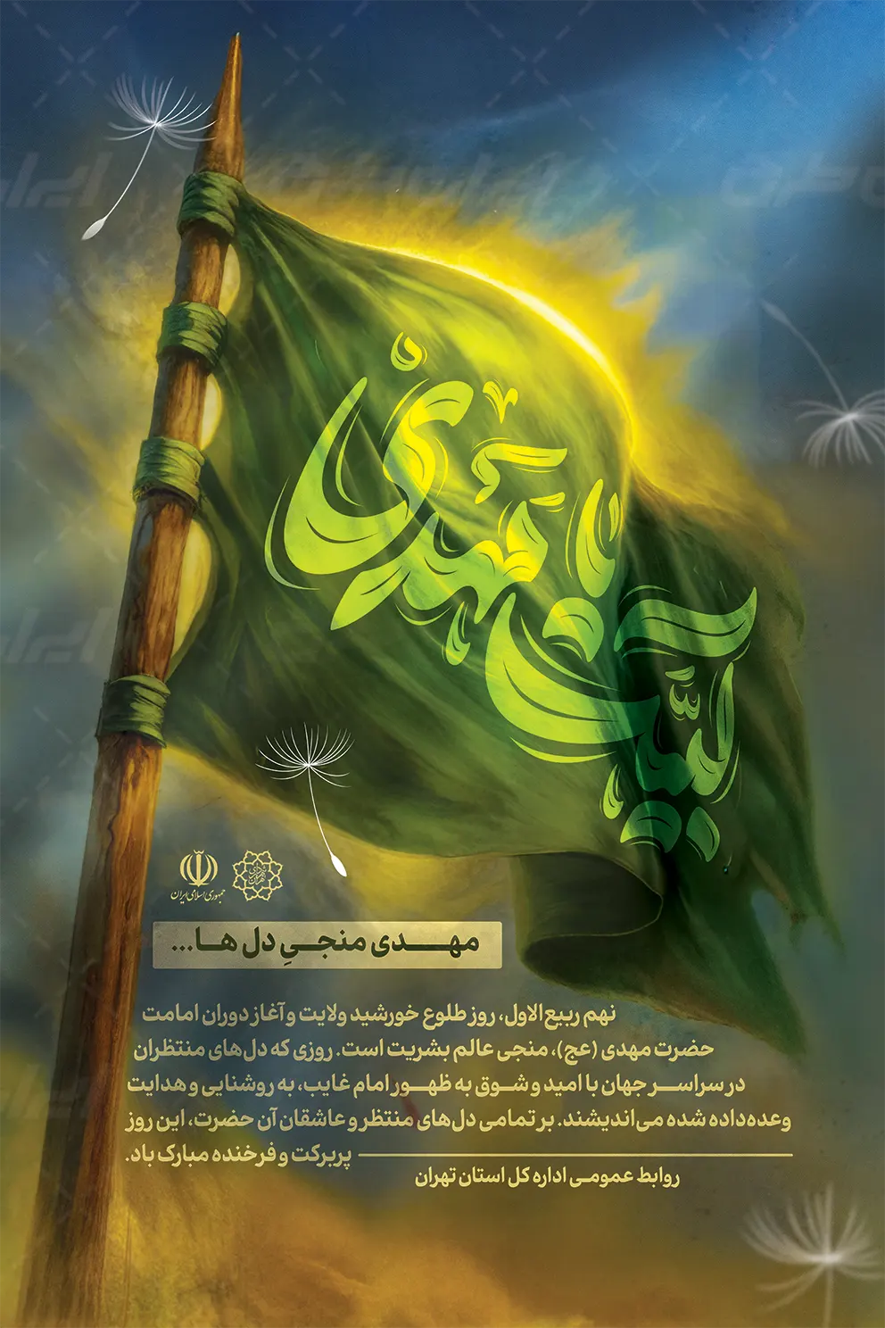 طرح پوستر آغاز امامت حضرت مهدی شامل: