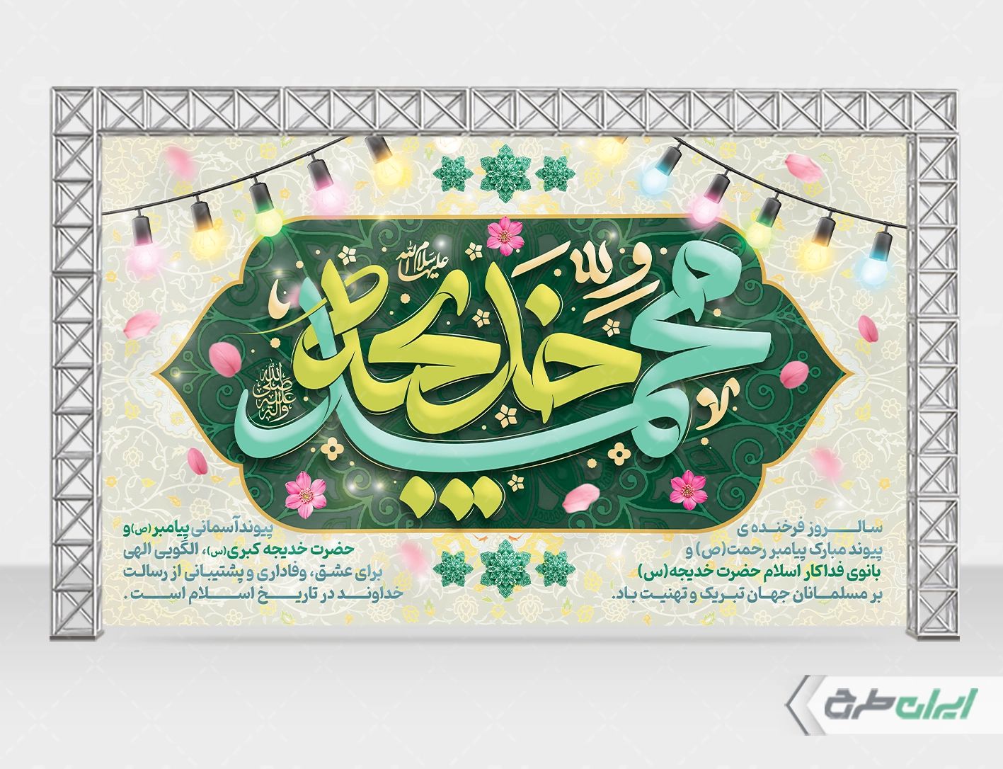 بنر سالروز ازدواج حضرت محمد و حضرت خدیجه (س)، توسط تیم حرفه ای ایران طرح جهت استفاده کاربران سایت طراحی و به صورت لایه باز در دسترس کاربران قرار گرفته است.
