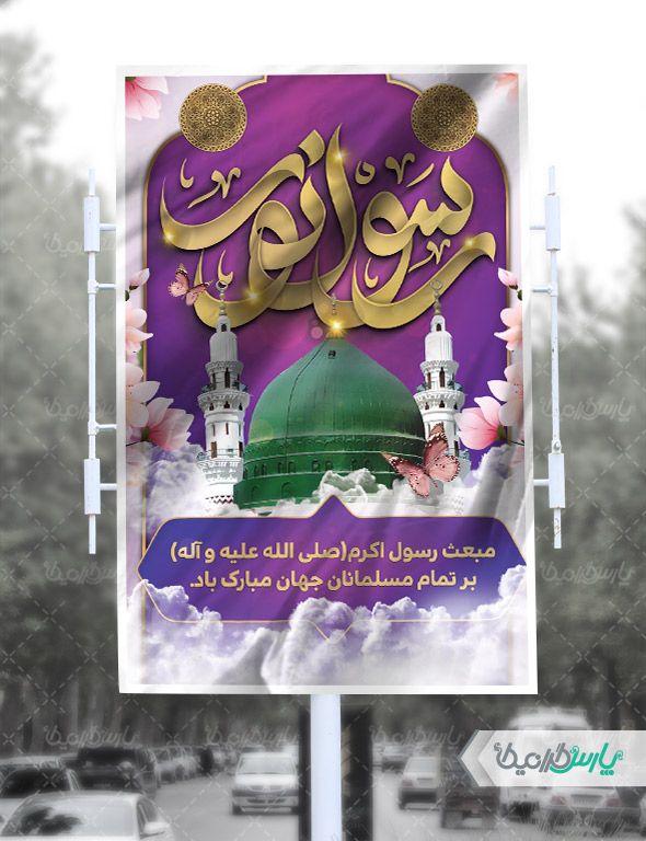 بنر لایه باز بنر عید مبعث، توسط تیم حرفه ای پارس گرافیک جهت استفاده کاربران سایت طراحی و به صورت لایه باز در دسترس کاربران قرار گرفته است.