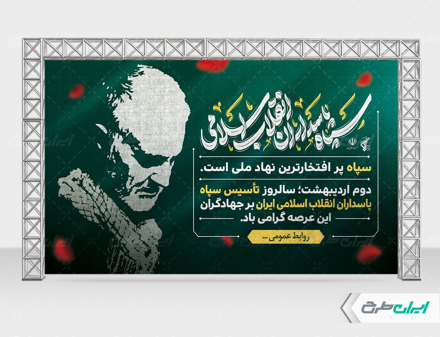 بنر روز تاسیس سپاه، توسط تیم حرفه ای ایران طرح جهت استفاده کاربران سایت طراحی و به صورت لایه باز در دسترس کاربران قرار گرفته است.