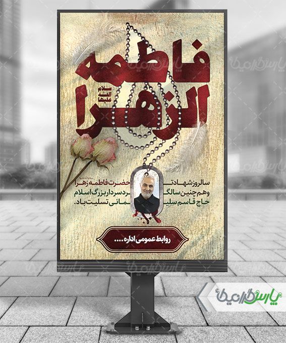 طرح بنر لایه باز تسلیت سالروز شهادت سپهبد حاج قاسم سلیمانی و همراهانش مصادف با ایام فاطمیه میباشد .