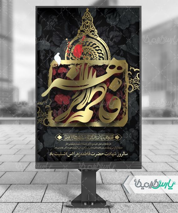 طرح بنر سالگرد شهادت حضرت فاطمه زهرا ، بنر سالگرد شهادت حضرت فاطمه زهرا، بنر لایه باز سالگرد شهادت حضرت فاطمه زهرا، بنر مناسبتی، تایپوگرافی فاطمه زهرا، عکس با کیفیت عزادار دهه فاطمیه، پرستو، متن تسلیت دهه فاطمیه