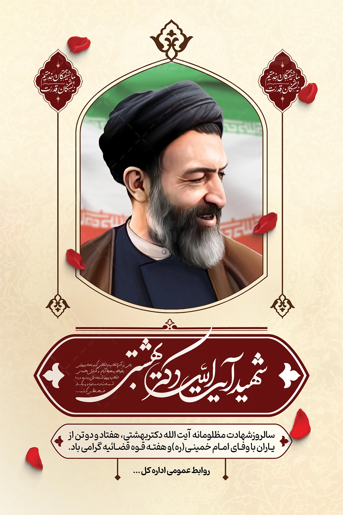 - طراحی بنر با استفاده از تصویر دکتر شهید بهشتی در طرح بنرروز قوه قضائیه و شهادت دکتر بهشتی