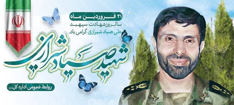 - طراحی بنر با استفاده از تصویر شهید صیاد شیرازی و پرچم ایران در طرح بنر سالروز شهادت صیاد شیرازی