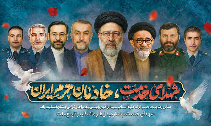 بنر سالگرد شهادت رئیسی و روز شهدای خدمت