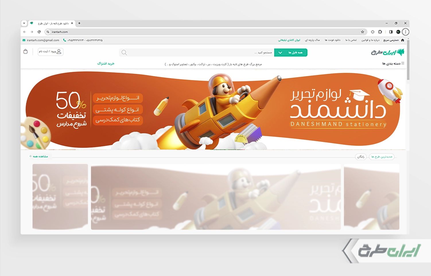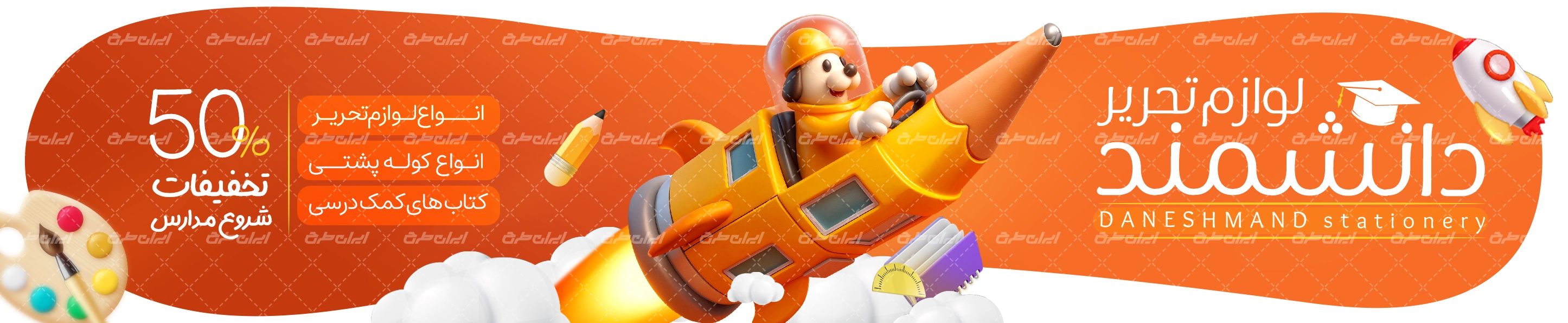 طرح بنر سایت لوازم تحریری، توسط تیم ایران طرح جهت تبلیغات و بازاریابی این دسته از فروشگاه ها طراحی شده است.