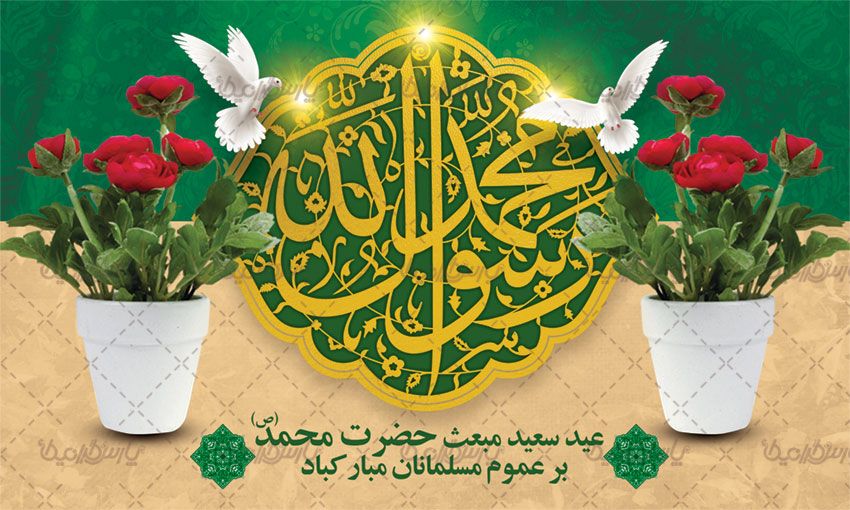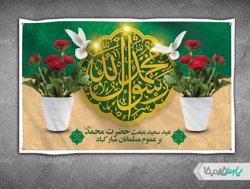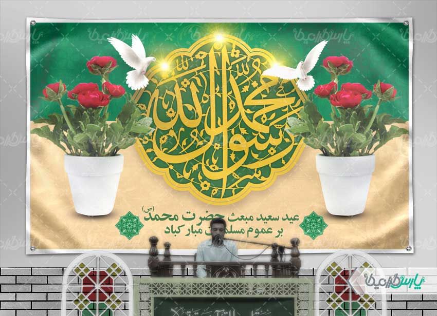 بنر لایه باز عید مبعث، توسط تیم حرفه ای پارس گرافیک جهت استفاده کاربران سایت طراحی و به صورت لایه باز در دسترس کاربران قرار گرفته است.