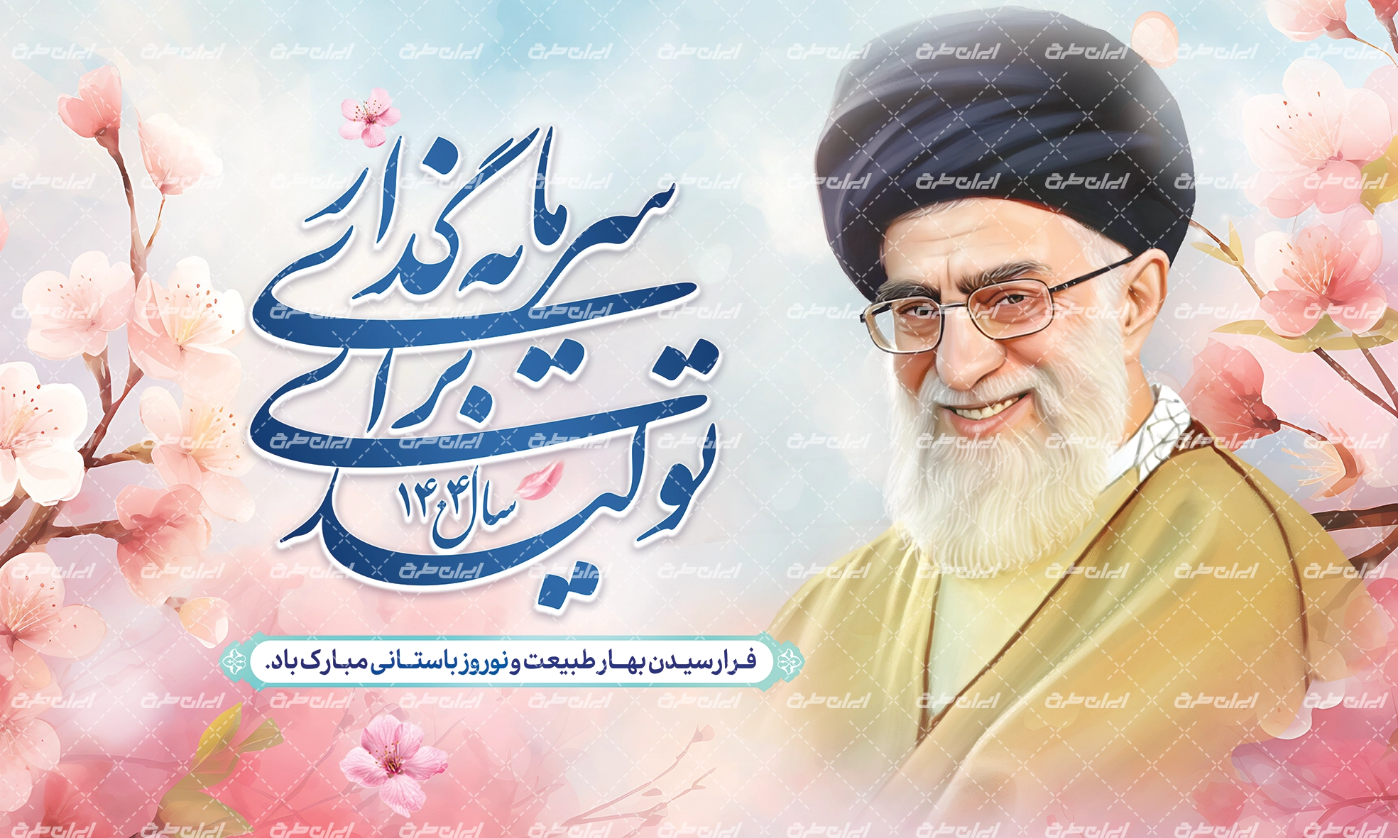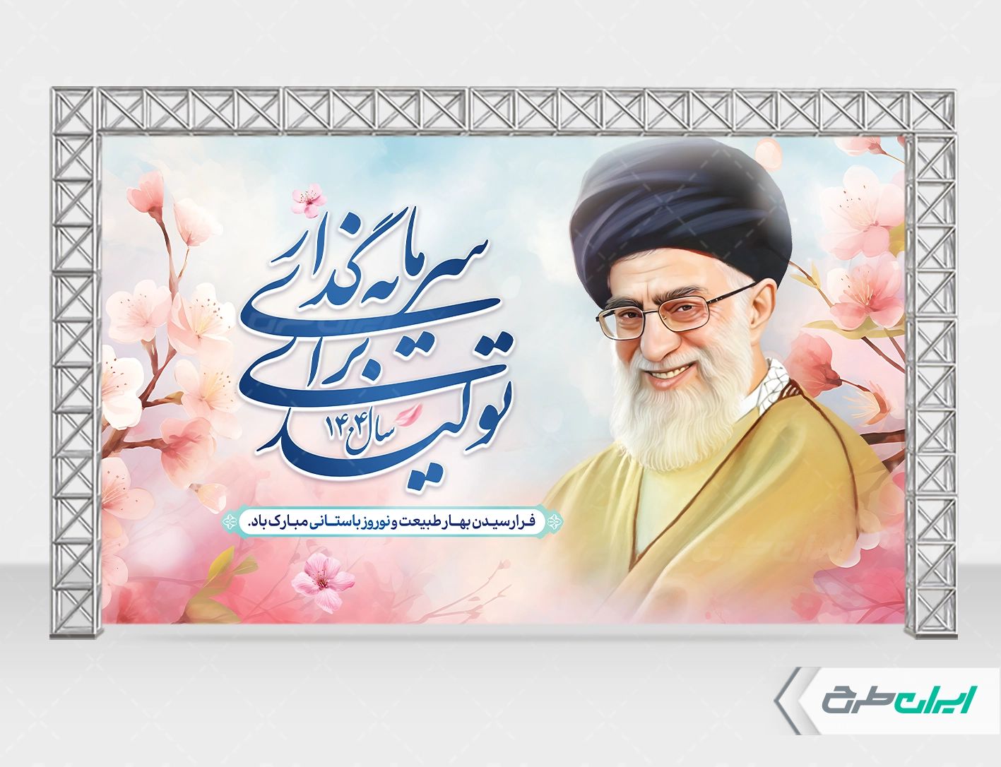 تصویر رهبری و متن شعار سال سرمایه گذاری برای تولید، که توسط تیم ایران طرح طراحی شده است.